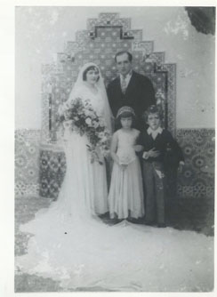 Antonio de Pombo Aycardi y Lucía Román Vélez posan para el fotógrafo el día de su matrimonio. Los pajes son Cecilia de la Espriella Pombo, y Arturo Gómez Pombo, sobrinos del novio.
