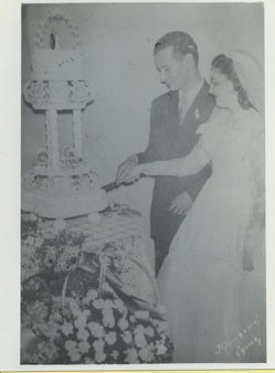 Matrimonio de Alba Pineda partiendo la torta la acompaña su esposo Mauricio.