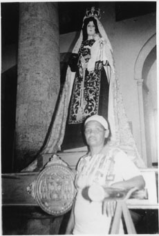 Sara Esther Amador Herrera en el monumento a la virgen del Carmen en el interior de la Catedral.