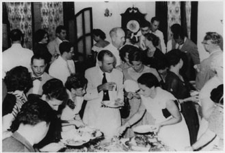 Fiesta para empleados de Andian, con banda naval. Doctor Miguel Valiente, “mono” Martelo, Alberto Samudio de la Ossa, Carmen Cuevas de Martelo.