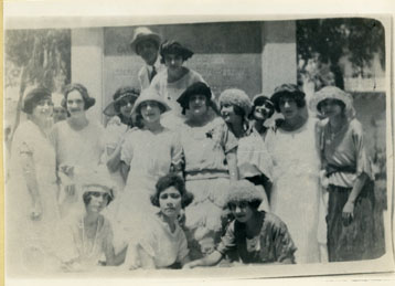 Un grupo de jóvenes al pie de la estatua de Simón Bolívar.