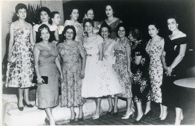 Un grupo de señoras en el Club Unión. Doña Pilar de Franco, Cecilia de Martínez, Fina Benedetti, Teresa P. de Angulo, Myriam Barrios.