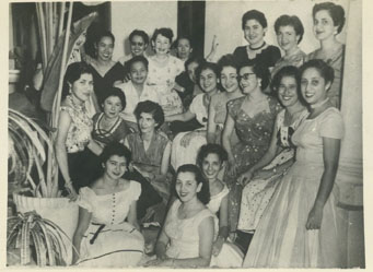 Fiesta para despedir una de las empleadas en la oficina de la Andian Corporation en su orden, Betty Barraza, Elvia Luhonchank, Carmen Pérez, Luisa ayazo, Rosita Jimenez, Ángela Buryter, Lastenia Merlano, Gladis Chaljul, Magola Alarcón, Rosita Mac master, Melida Stephens, Margarita Garzón, Clara Bonfante, Mercedes Sánchez, Paulina Mac master, Marina Cuervos, Aura Mc Gregor, Mariela Frías, Asseneth Díaz, Mirian Barrios y Beatriz Gulfo.