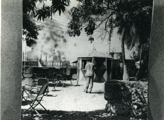 Se observa un kiosko sobre la muralla, al fondo el mercado del Arsenal.