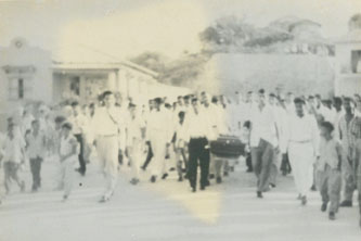 Entierro del joven José Fajardo, lo acompañan los estudiantes del Colegio Fernández Baena, Torices.