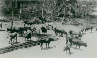 Juan Trucco en su hacienda junto a su ganado