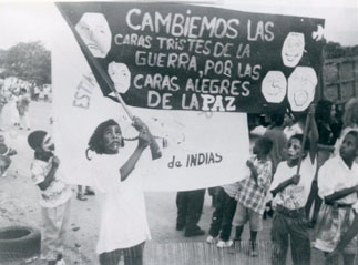 Niñas y niños en la comparsa por la vida, del festival cultural por la vida de FUNSAREP.