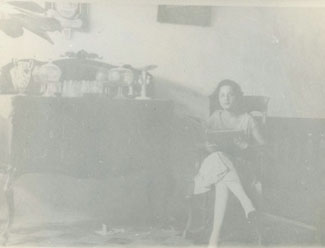 Leyendo al lado de un sideboard /