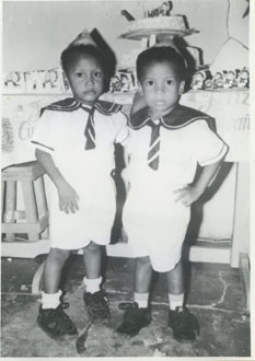 Los niños Jhon Polo y Antonio Amador en una fiesta de cumpleaños, vestidos de marinero.