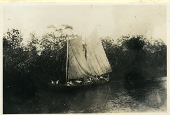 Velero entre manglares, posiblemente por el tramo de lo que hoy es la Avenida del Lago.