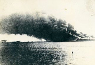 Se puede apreciar la cortina de humo que obstaculiza la visibilidad en el incendio producido en el Muelle de la Machina.