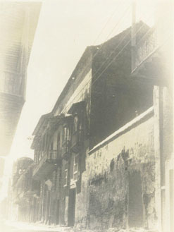 Casa del Marqués de Valdehoyos en ruinas, al fondo se detalla la Iglesia Santo Domingo.