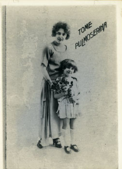 Propaganda que la mujer lanza cajas de pulmoserina a los males del tracto respiratorio, publicado hacia los años 20, una tónica, remedio contra la tos.