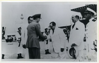 Gobernador Lequerica saluda al Príncipe Bernardo de Holanda. Don Vicentico Martínez al lado.