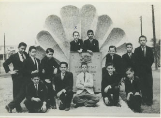 Grupo de graduandos del Colegio la Salle, con Antonio Cozzarelli, en la "caracucha" en Avenida Chile en Bocagrande.