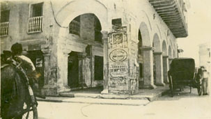 Esquina de la Casa de la Isla, sobre la plaza de la Aduana, demolida en 1926 para construir el Edificio Andian, barrio Santa Catalina, Centro.