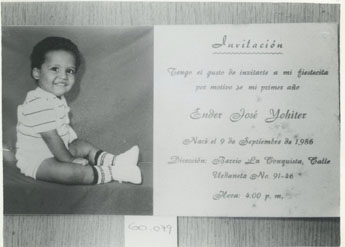 Recuerdo de la invitación del primer año de Enden José Yohite.