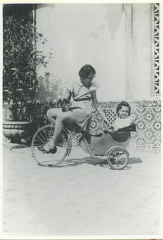 Dos niñas montando triciclo