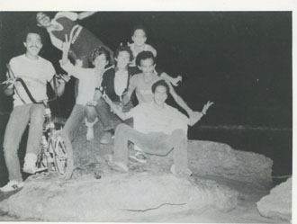 Rafael Caraballo en una fogata de la universidad con un grupo de compañeros.