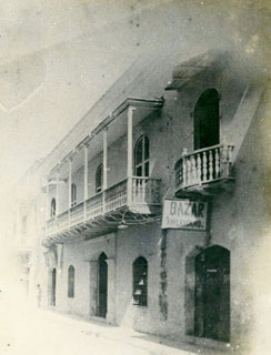 Casa colonial de dos plantas, ubicada en la calle del Arzobispado 1901. Antes llamada Cementerio de la Iglesia, barrio Santa Catalina “Bazar Americano”, dice la tablilla.