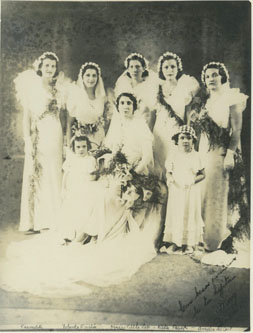 Novia Maria M. de la Vega. Damas: Carmelita Delvolle, Yolanda Emiliani, Margoth de la Vega, Nelly Pareja, Amelia del Castillo.