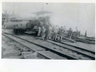 Maquina remachadora o atornilladora sobre el muelle de carga, para obras ejecutadas en el muelle de “La Machina”.