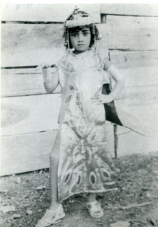 La niña Aleida Posada cuando presentó una obra de teatro de Cleopatra en el teatro Heredia, ganó premio al mejor disfraz.