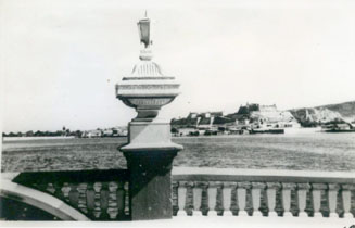 Detalle de farola del puente Luís Henrique Román, al fondo el castillo de San Felipe, barrio Manga.