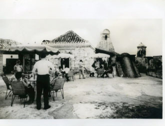 Castillo de San Felipe de Barajas, explanada detrás de la espadaña con visitantes.