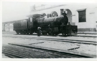 Locomotora número 7. Lista para comenzar operaciones dentro de la estación central del tren de Cartagena.