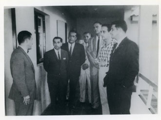 Inauguración de la primera etapa de la Cruz Roja de Bolívar, detrás de la parte posterior a la edificación se encuentran el doctor Alfonso Zurek Mesa, Guillermo Ortiz Manrique, Alfonso Pereira, Hernando Lemaitre Román.
