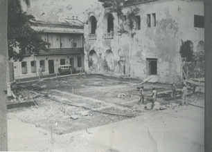 Plazoleta Museo Naval en obra negra, barrio Santa Catalina, Centro. Hoy Plaza Museo Naval.