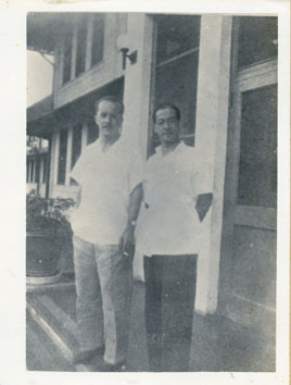 Doctor Víctor Piñeros Bernal y el Doctor Hernando Espinosa París. En la puerta del Hospital Andian de Mamonal.