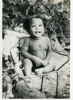Rafael Guzmán Amador sentado en una silla antigua de hierro en 1971 en el patio de su casa.