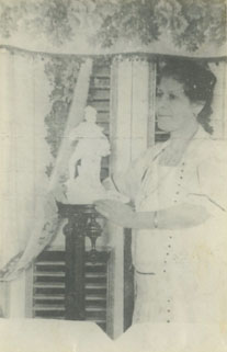 Señora posando con porcelana.