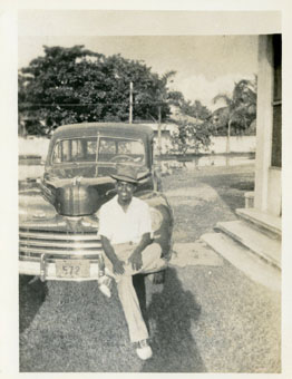Chofer de la chiva de Andian, Víctor Castellón, en el patio del club en Bocagrande, después Colegio Jorge Washington y hoy un complejo de hoteles en construcción (2013).