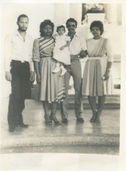 Aparece la niña Cynthia Torres en la Ermita de la Popa, la acompañan Florencio F. Osiris Bermúdez, José Luis Ferrer y Erida Bermúdez; en el día de su bautizo.