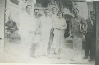 De izquierda a derecha Luis Carlos Delgado protocolo a la Gobernación, Roque Pupo Villa gobernador de Bolívar, Enrique Grau alcalde de Cartagena, la escritora Teresa de la Parra, Carlos Escallón, atrás Elías Gómez Casseres.