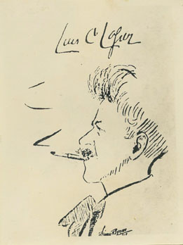 Dibujo caricaturesco del poeta Luis Carlos López, a quien llamaban cariñosamente "El Tuerto López" por su acentuado estrabismo en un ojo.