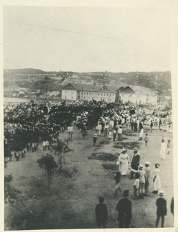 Desfile de tropas frente al Corralón de Mainero, con el Castillo San Felipe al fondo.