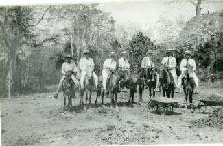 Un grupo de jinetes en un paseo a caballo.