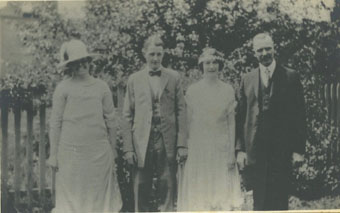 Irving Henry Johnson con Dorothy Adela Cowan, con sus padres Verjetta Driscoll y Elmer Merriel Cowan en el día del matrimonio.