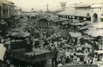 Invasión del espacio público en la calle adyacente al Mercado público de Getsemaní en Cartagena.