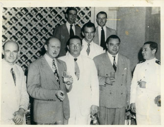 Harry Bentley, cónsul inglés, de izquierda a derecha: sin identificar, Harry Bentley, Esteban de Pombo Aycardi, Rafael Escallón Villa.