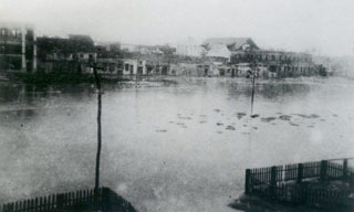 Inundación de las vías del Centro de la ciudad, detrás de la estación central del tren.