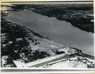 Parque Apolo frente a la casa de Núñez, actualmente Museo Casa Rafael Núñez. Se aprecia el baluarte de Santa Catalina y San Lucas, el barrio el Cabrero y hacia el frente la ciénaga de San Lázaro y el barrio Torices.