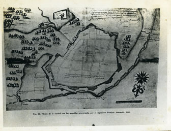 Mapa de Cartagena. Planta de la ciudad con las amurallas proyectadas por el ingeniero Bautista Antonelli en 1595.