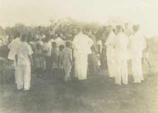 Funeral de un trabajador de la compañía Andian, se observan las multitudes acompañantes en el cementerio.