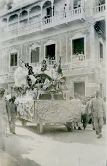 Carroza de la Escuela Normal en celebración del 20 de julio de 1918.