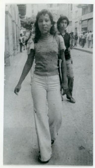 Aparece Rosario Olmos caminando por el centro de la ciudad.